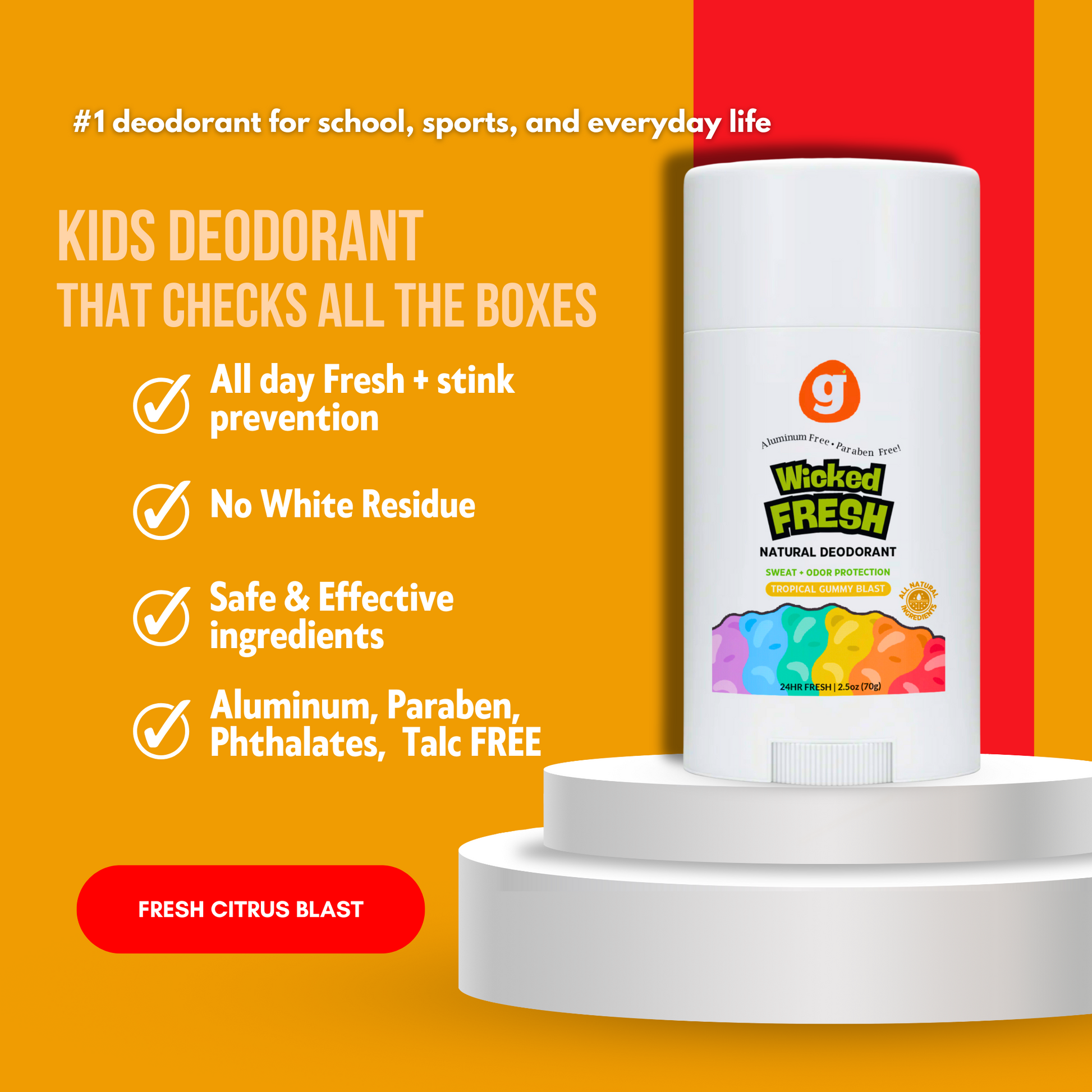 Wicked Fresh is a non-toxic deodorant for school age kids that keeps'em feeling clean and confident all day.